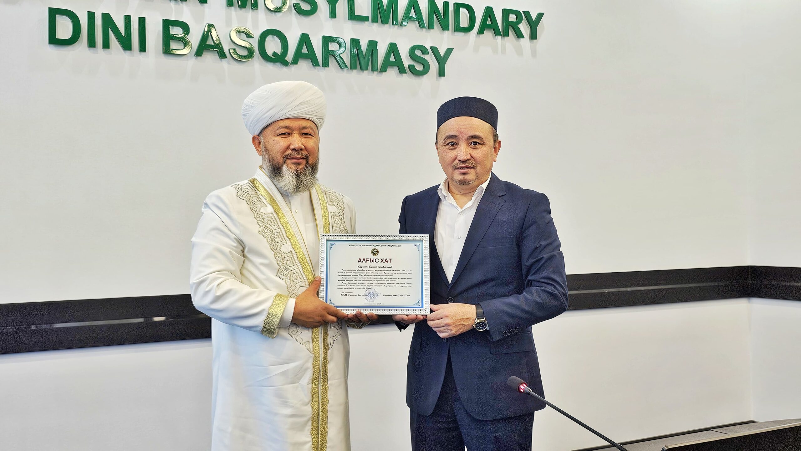 «Асыл дініміздің абыройын асқақтату жауапкершілігін терең сезініп, діни салада белсенді қызмет атқарғаныңыз үшін Өзімнің және Қазақстан мұсылмандары діни басқармасының атынан Сізге айрықша алғысымды білдіремін!