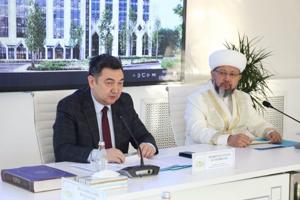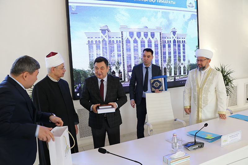 Сондай-ақ Қазақстан мұсылмандары діни басқармасының Төрағасы, Бас мүфти Наурызбай қажы Тағанұлы: «ҚМДБ құрылтайшылық жасайтын НМУ-дің ағарту саласында атқарып жатқан жұмысы орасан зор. Бүгінде біздің имамдардың көпшілігі осы университет түлектері. Исламтану, дінтану, теология, шетел филологиясы, аударма ісінің мамандарын даярлап келе жатқан университет ТМД бойынша бірегей. Осы салада бірлікпен атқарып жатқан еңбегіміз елімізге жемісті болсын», – деп министрлік пен университет ұжымына ынтымақта атқарып жатқан еңбек үшін ыстық ықыласын жеткізді. Еліміздегі діни кадрларды даярлауға қатысты да мәселелер талқыланған кездесу аясында министр Дархан Қуандықұлы университет кітапханасына Х ғасырда тәржімаланған «Көне түркі тіліне аударылған алғашқы Құран» кітабын табыстады. Университет басшылығы өз кезегінде «Нұр-Мүбарак» баспасынан оқытушылар еңбегімен жарық көрген Құран Кәрімнің қазақша аудармасы мен «Арабша-Қазақша сөздікті» сыйға тартты.